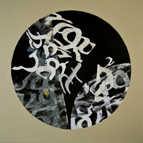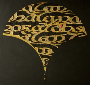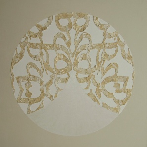 “The Boatsong, gold ring” 80x80cm Laser cut and mixed media on canvas