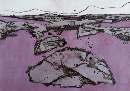 “Flow Country, peat bogs” 21x19cm Ink and acrylic